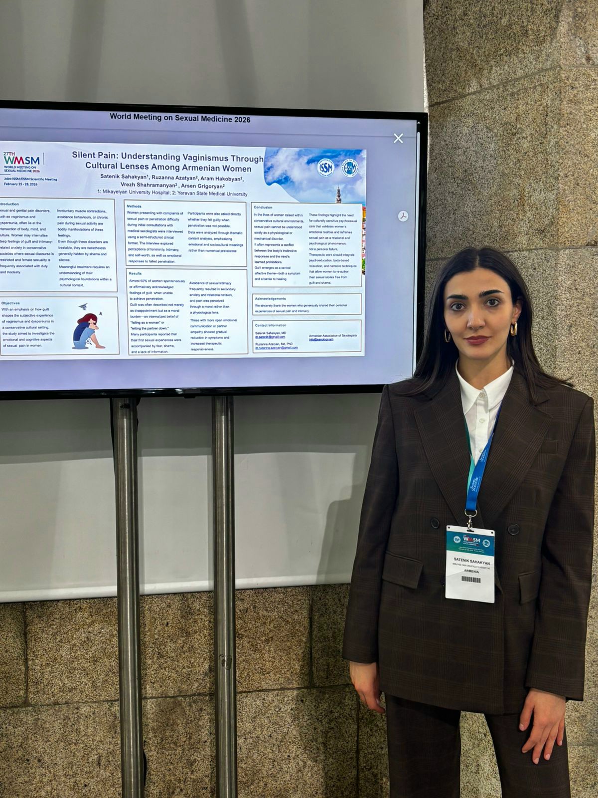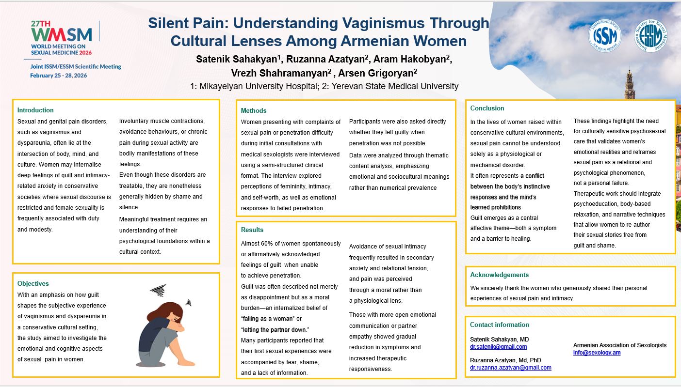 Գիտաժողովի ընթացքում ներկայացվեց 2 գիտական աշխատանք․ ԵՊԲՀ Սեքսոլոգիայի ամբիոնի կողմից կատարված աշխատանքի համառոտագիրը՝ «Լուռ ցավ». Վագինիզմը հայ կանանց մշակութային առանձնահատկությունների տեսանկյունից»