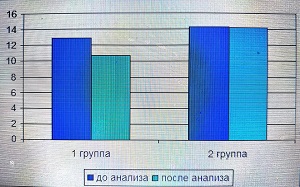 Как видно из таблицы и рисунка 3 у пациентов 1 группы средняя оценка МИЭФ до первичного анализа спермы составила 12,87±0,48 балла, а после сообщения им о результатах анализа – 10,75±0,25 балла. У пациентов 2 группы средняя оценка МИЭФ до первичного анализа спермы составила 14,26±0,21 балла, а после сообщения им о результатах анализа – 14,21±0,26 балла.